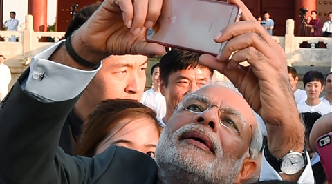 Prime Minister Narendra Modi takes selfie at Yoga-Taichi joint event at the Temple of Heaven in Beijing (Source: AP)