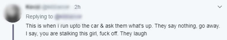 The female Twitter user mentions that at around 1am, while she was walking “from Hauz Khas Village to Aurobindo”, she suddenly noticed a car full of boys, taking a turn the moment after spotting a girl. The girl, as the Twitter user says, was wearing shorts and was with a very drunk male friend. The car apparently started following them and soon two boys came out and surrounded the girl. Talking to indianexpress.com, the girl explains how methodically the boys in the car had planned to abduct her, and perhaps would have had she not intervened. She was with a couple of her friends, and the boys finally left the scene when she attempted to record their video.