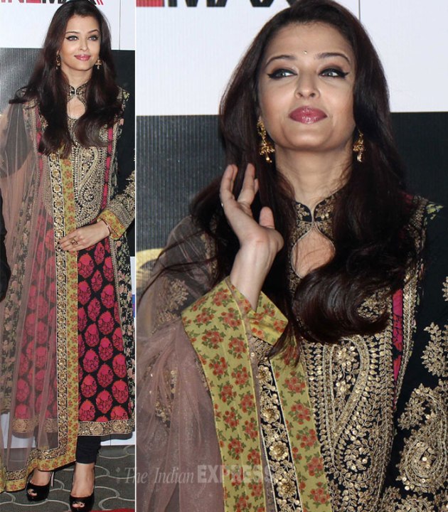 Former beauty queen Aishwarya Rai Bachchan was elegant in a beautiful Pankaj and Nidhi creation accessorised with jhumkas and black heels. (Photo: Varinder Chawla)