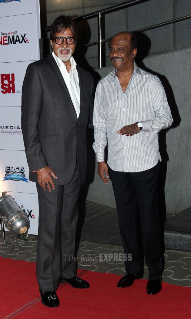 Both the superstars – Amitabh Bachchan and Rajinikanth are all smiles as they pose together for the shutterbugs. “Back from the launch of 'KOCHADAIIYAN' Rajnikanth's motion capture technology film , made directed by his daughter .. INCREDIBLE !!,” posted Big B. (Photo: Varinder Chawla)
