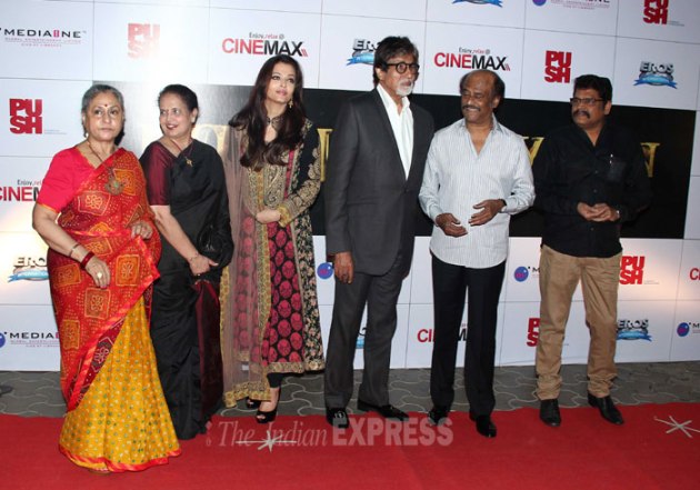Megastar Amitabh Bachchan launched the trailer of Tamil superstar Rajinikanth’s film, ‘Kochadaiiyaan’. Big B was accompanied by wife Jaya and daughter-in-law Aishwarya Rai Bachchan. (Photo: Varinder Chawla)