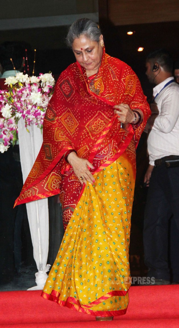 Jaya Bachchan looked nice in a bright yellow and red sari. (Photo: Varinder Chawla)
