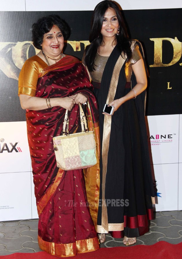 Director of ‘Kochadaiiyaan’, Soundarya poses with her mother for the cameras. (Photo: Varinder Chawla)
