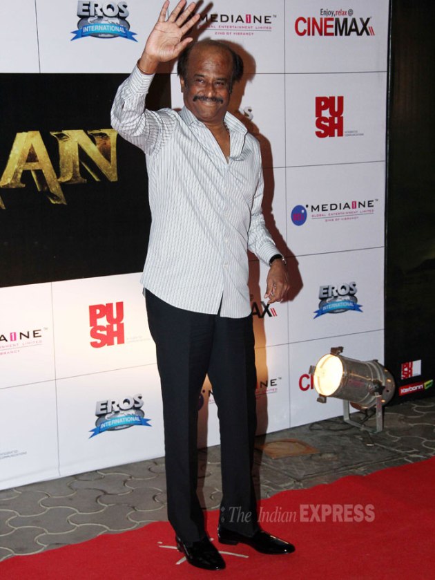 The star of the night, Rajinikanth waves to his dear fans. The actor will be seen romancing Deepika Padukone in ‘Kochadaiiyaan’, which has been directed by his younger daughter, Soundarya. (Photo: Varinder Chawla)