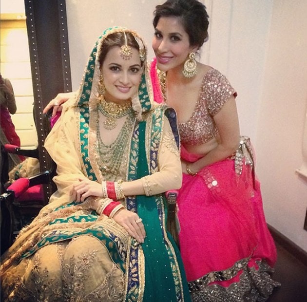 Dia Mirza's friend and actress Sophie Choudry shared a picture of herself with the bride at the wedding ceremony, which was held on October 18 in New Delhi. Sophie, who was pretty in a pink Manish Malhotra lehenga captioned the picture, “Beautiful Dulhaniya @deespeak .. Wish you & Sahil happiness forever Dee #bride #india #beautiful #happy #wedding” (Source: Instagram)