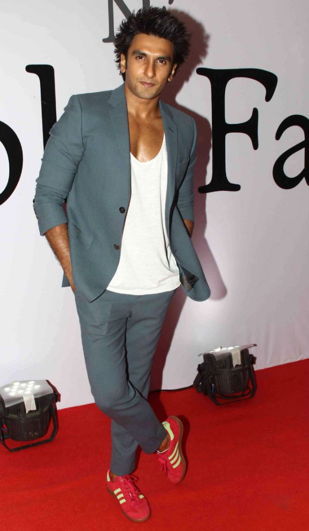 Joining the ladies on the best-dressed list is none other than Bollywood hunk Ranveer Singh. Known for his extremely brave choices on the red carpet, Ranveer looked hot in grey with a white tee shirt, red sneakers and spiked hair. (Source: Varinder Chawla)
