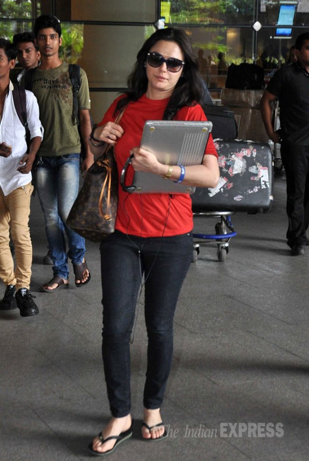 IPL's Kings XI Punjab owner Preity Zinta also seemed to be in a big hurry to get somewhere. (Photo: Varinder Chawla)