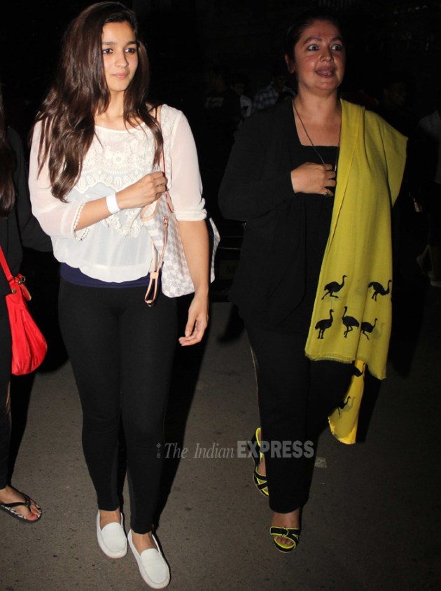 Alia was cute in black jeggings and cream top. Alia opted for side swept hair and zero makeup and no accessories look. (Photo: Varinder Chawla)