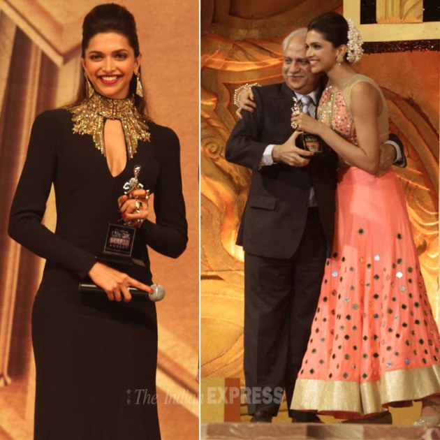 Deepika Was also seen in the black outfit (L) as she collected her Best actress in Popular Choice trophy. (IE Photo: Dilip Kagda/Vasant Prabhu)