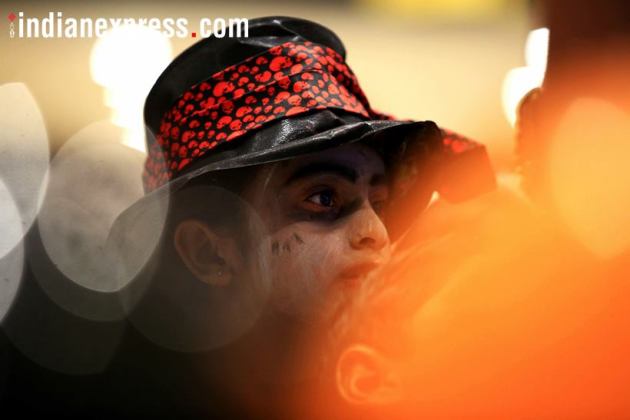 A boy participates in a Halloween party at a bookstore in Malabar Hill. (Express Photo by Janak Rathod)