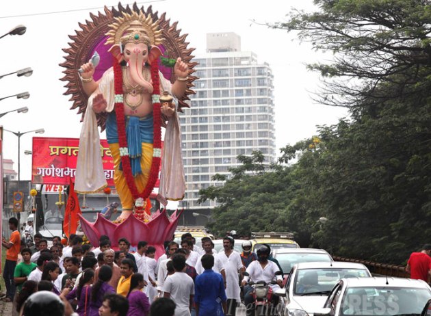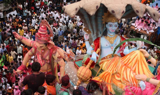 Traffic on the streets of Mumbai comes to halt as Ganpati is taken for immersion. (Source: Express photo by Pradip Das)