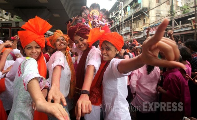 Youngsters are seen celebrating the last day of Ganpati Festival in Mumbai. (Source: Express photo by Prashant Nadkar)