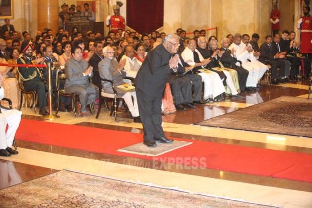 Legendary cricketer Sachin Tendulkar and eminent scientist Prof C N R Rao were on Tuesday (February 4) conferred with the country's highest civilian honour Bharat Ratna by President Pranab Mukherjee. (IE Photo: Neeraj Priyadarshi)