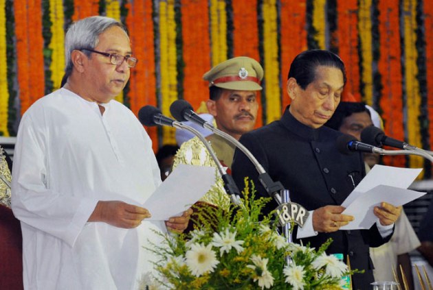 Naveen Patnaik is sworn-in as Chief Minister of Odisha by the Governor SC Jamir during a ceremony at Rajbhawan in Bhubaneswar on Wednesday. (Source: PTI)