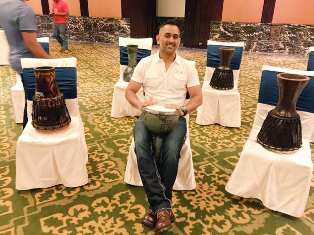 Limited overs skipper MS Dhoni was seen practising djembe, a musical instrument. (Source: Twitter)