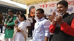Mamata Banerjee and Arvind Kejriwal denounced Narendra Modi led Centre in fiery speeches at a protest rally in Azadpur Mandi, Delhi on Thursday. Both leaders targeted the government for its decision to withdraw currency notes of Rs 500 and Rs 1000 from circulation. They threatened to intensify their agitation if the government did not roll-back its decision to discontinue old currency notes in three days.