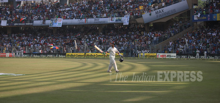 In his 200th and last Test match, Sachin Tendulkar showed how a genius can keep overwhelming emotions under control as he scored a majestic 74 in what will probably be his last international innings. (IE Photo: Neeraj Priyadarshi)