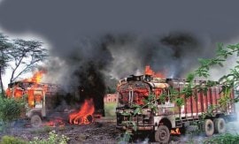 Angry villagers target buses,police vehicles after rumours about cattle rustlers