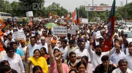BJP workers today held a protest against Delhi CM Arvind Kejriwal over power tariff hike in New Delhi.