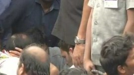 Hyderabad, Jan 19 (ANI): Congress vice-president Rahul Gandhi arrived at Hyderabad University to express solidarity with the students and members of Jagruti Yuva Morcha protesting suicide of a Dalit PhD scholar. In a tragic incident, a Dalit PhD scholar Rohith Vemula was found hanging at a central university's hostel room in Hyderabad on Sunday. A case has been filed against Dattatreya, University of Hyderabad Vice-Chancellor Apparao, ABVP activist Susheel Kumar and his brother Vishnu by the Hyderabad police under section 306A. Meanwhile, the HRD ministry has asked a two-member panel to probe the case.