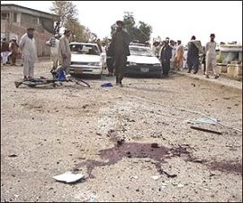 A suicide bomber blew himself up when he was stopped by a security guard at the bank entrance.