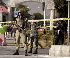 At least eight paramilitary personnel were killed and five others injured when a suicide bomber struck in the heart of the Pakistani capital targeting security forces near the UN office.