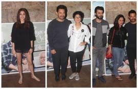 Sultan actress Anushka Sharma along with her PK co-star Aamir Khan, his wife Kiran Rao were seen at the screening of 'Kapoor & Sons' on March 15. Also seen at the screening was film's lead actor Fawad Khan with his wife. But birthday girl Alia and her rumoured boyfriend Sidharth were missing in action. The trio was in Delhi for the promotions of Kapoor and Sons. <br /><br /> Film's producer Karan Johar had earlier screened the film for the families of his cast and crew. And this is the second screening.