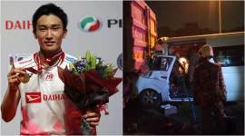 Momota was among four passengers in a van travelling to the airport on Monday when it crashed into the back of a 30-tonne truck, injuring them and killing the driver of the van.