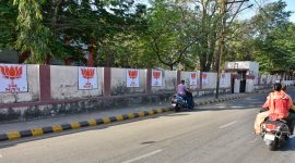 This is the third instance when the party painted its election symbol on compound walls of government office buildings and public walls.