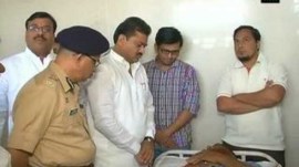 Latur (Maharashtra), Feb 25 (ANI): Maharashtra Home Minister Ram Shinde on Thursday met the Muslim cop, Yunus Sheikh, who was assaulted by local goons and forced to carry around a saffron flag in Maharashtra's Latur district. Sheikh was hospitalised after he prevented a mob from putting up the flag at a controversial spot in Pangaon village.