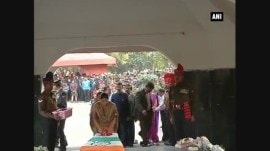 New Delhi, Feb 11 (ANI): Tributes poured in from across the country for the Siachen braveheart Lance Naik Hanamanthappa. Defence Minister Manohar Parrikar and three service chiefs paid their last respect to the Lance Naik at Brar Square in New Delhi on Thursday. Congress vice president Rahul Gandhi, Delhi Chief Minister Arvind Kejriwal and Deputy Chief Minister Manish Sisodia were also among others who paid their last respects to the Lance Naik. Hanamanthappa, who was miraculously found alive after remaining buried under huge mass of snow for six days at the Siachen Glacier, passed away at Army's Research and Referral Hospital at 11.45 a.m. today.