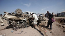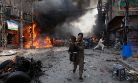 Car carrying 220 kg of explosives detonated,damaging 50 shops and setting afire many vehicles.