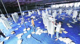 Several spectators continued to be seated, gazing at the stage that showed no sign of any activity.