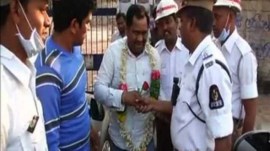 Hyderabad (Telangana), Feb 29 (ANI): The traffic police in Hyderabad has come up with a unique idea to shame people who urinate in public - by hanging flower garlands around their necks. Speaking about the initiative, Additional Commissioner of Police (Traffic) Jitender, said that such campaigns raised public awareness about sanitation and personal hygiene. Meanwhile, Sub-Inspector of Traffic Police, N. Rama Krishna, said that the the initiative is a part of ‘Swachch Hyderabad’ drive to keep the city clean and also help people follow traffic rules.