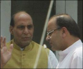 BJP general secretary Arun Jaitley met party president Rajnath Singh at his Ashoka Road residence on Thursday. The Rajnath-Jaitley meeting assumes significance in view of the unprecedented divide in the party over the appointment of Sushanshu Mittal.