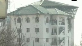 Pampore (J&K), Feb 22 (ANI)The security forces conducted a flushing out operation at the government complex of Entrepreneurship Development Institute (EDI) in Pampore on the Jammu- Srinagar National Highway, where terrorists are holed up since three days. The entire area has been cordoned off as security forces are engaging heavily with the terrorists, who are heavily firing from the building.