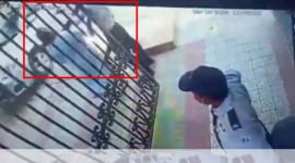 In CCTV footage, the woman, a DU professor, is purportedly seen walking towards a group of three security guards and slapping one of them.