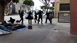 The graphic footage, which appeared on Facebook, shows a violent altercation between a man and several officers.