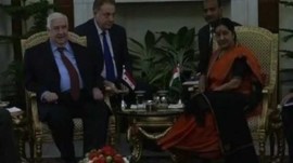 New Delhi, Jan 12 (ANI): External Affairs Minister Sushma Swaraj on Tuesday met Syrian Deputy Prime Minister and Minister for Foreign Affairs Walid al Moualem in New Delhi ahead of a four-day bilateral visit. He is slated to discuss a host of bilateral issues, besides the situation in Syria.