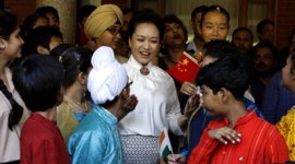 China's first lady Peng Liyuan on Thursday visited a school in New Delhi.