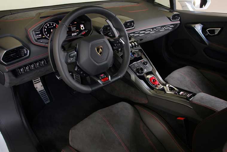 A similar kind of treatment is seen inside the car, where you find a similar layout as that seen in the Aventador. The interior is heavily inspired by a stealth-jet’s cockpit and you get all the control knobs and buttons on the dashboard, and elsewhere inside the car, designed on similar theme.