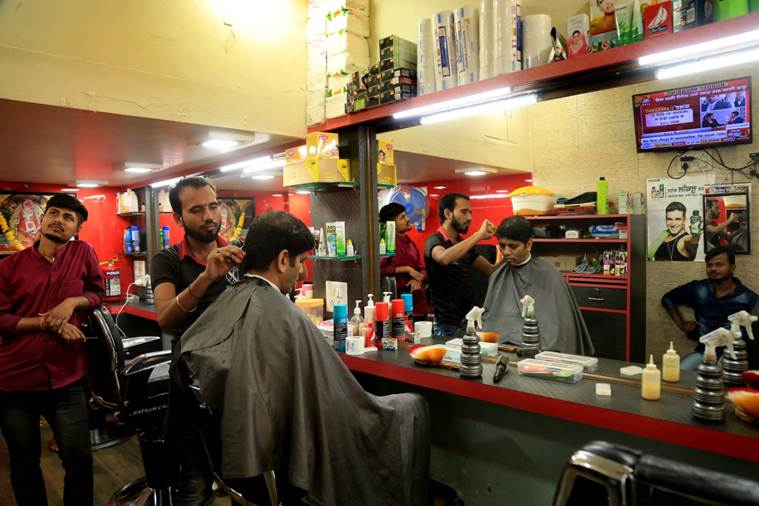 People watching news channels for the Budget News in a salon in Navi Mumbai. The general expectations from the budget for them are that the daily prices of essential commodities should be lessened (Express Photo Amit Chakravarty)