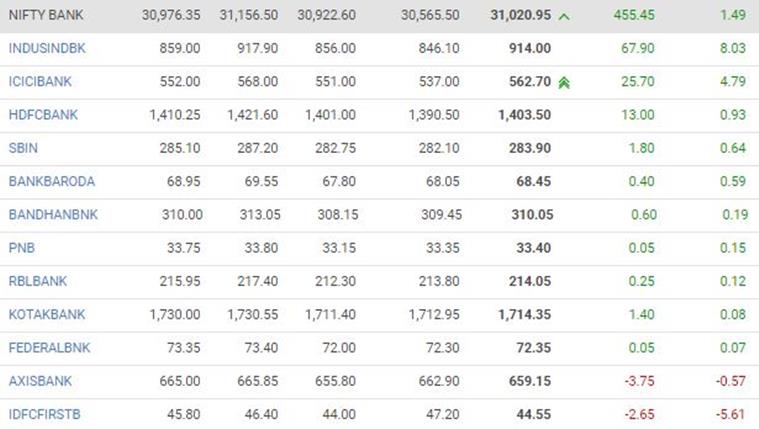 The key sectoral index, Nifty Bank was trading around 1.5 per cent higher in the early trade led by gains in the shares of IndusInd Bank and ICICI Bank.