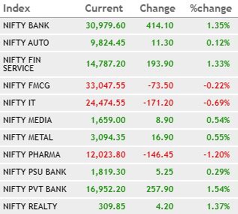 At 10 am, the Bank Nifty and Nifty Financial Services indices on the National Stock Exchange (NSE) were trading over 1 per cent higher. However, the Nifty Pharma index was down over 1 per cent.
