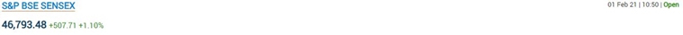Sensex extends its gains as Finance Minister Nirmala Sitharaman concluded her Union Budget 2021 speech.