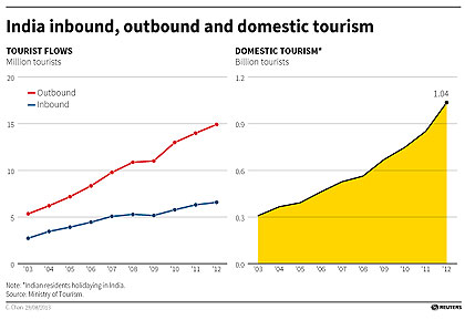 About 15 million Indians normally take vacations overseas each year,so the shift is keeping millions of them and their spending at home. It also means they will not be selling rupee for foreign currency,offering small relief for the beleaguered rupee.