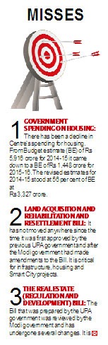 “I used to close around 5-6 property deals a month during 2011-2012. The numbers have now shrunk to 1-2 per month,” says a senior real estate consultant with a leading financial institution in Delhi-NCR, when asked about the status of the industry in recent times. The gradual fall in the fortunes of the sector over the last couple of years has failed to halt despite the big-bang announcements and promises by the NDA government on reforms across sectors including ease of doing business. The first year of the Narendra Modi government witnessed two policy rate cuts of 25 basis points each by the Reserve Bank of India and an additional tax deduction on Rs 50,000 on the interest component of home loans but the realty sector still awaits a revival of its fortunes. [related-post] Even though expectations were high, the industry has only witnessed the situation worsening with time. Unsold inventory has gone up amid weak demand and few project launches across the country. It’s not just the developers who are under stress. Brokers and customers, too, are facing the heat. A Noida-based realty broker narrated a similar story: “I was able to close 2-3 deals in a month till 2012, but now even one deal a month is tough. It’s a tough market. A lot of my friends have stopped dealing in real estate now,” he said. While the private sector has been hit on various accounts, sectoral experts feel that the housing sector has received less importance by the new government and that is visible in planned Central spending, which has witnessed a decline in the revised Budget Estimates for housing for 2014-15 and even in the Budget allocation for 2015-16. As against the Budget allocation of Rs 5,917 crore for housing in 2014-15, the revised estimates show that the amount spent was only 56 per cent of the initial allocation at Rs 3,327 crore as there were significant cuts in schemes like Rajiv Rinn Yojana (RRY) and Jawaharlal Nehru National Urban Renewal Mission (JNNURM). The interesting point to note is that the Budget allocation for housing for 2015-16 is less than a quarter of the initial allocation for the previous year and stands at only Rs 1,448 crore. It is less than half of the revised estimates for 2014-15. “Everything seems to have stopped. While the previous housing schemes have been stopped, new schemes have not come up yet. The government spending on housing has gone down significantly,” said a former secretary of the Ministry of Housing and Urban Poverty Alleviation. Though the government plans ‘Housing for All’ by 2022, experts say it’s high time that the Centre puts its strong foot forward to achieve that. “After having announced the scheme during the first Budget in June 2014, the government has remained silent on details. The task of constructing 2.34 million homes every year as against an actual delivery of 1.2 million homes during the 11th five-year plan period (ending March 2012) is humungous. As of now, matters definitely do not look upbeat on this front,” said Anuj Puri, chairman and country head at JLL India. The last year also seems to have missed out on the Real Estate (Regulation and Development) Bill. While the regulations were framed when the Congress-led UPA was in power, the current government later decided to review the provisions of the Bill and even as it has approved some amendments, the Bill awaits clearance. The government also failed to make any significant progress on the Land Acquisition, Rehabilitation and Resettlement Act. Even though the Bill is critical to the government’s vision of building better infrastructure, affordable housing projects and smart cities, it now awaits recommendations of the joint committee of Parliament that is expected in the forthcoming monsoon session. In the meantime, project launches by real estate developers are also on a decline and the unsold inventory is on a rise. According to a report of PropEquity, unsold inventory across 14 leading cities across the country stands at 7.6 lakh units. The inventory pile up has been led primarily by Mumbai Metropolitan Region and the National Capital Region (NCR) with 2.15 lakh and 1.88 lakh unsold units, respectively, as of December 2014. Experts say that the housing demand is dependent upon various factors including growth of the economy, rise in job creation and investment by the private sector. Even as the GDP growth is expected to cross 7 per cent mark in 2014-15, the economic activity has lagged significantly. While corporate investments are yet to take-off, both corporate earning and the gross bank credit for the year 2014-15 stood weak. RBI data shows that the gross bank credit for the year ended March 2015 stood at a low of 8.6 per cent down from 14 per cent and 14.1 per cent in the year ended March 2014 and March 2013, respectively. A weak credit growth and subdued corporate investment have bearing on the new job creation, which, in turn, leads to a pick up in the real estate demand. Along with the residential segment, the retail space and office space market is also struggling. While there has been some take-off in the office space market in Bangalore on account of demand from the IT sector, other major markets have been weak. On the retail front, experts say that the e-commerce players have impacted the brick-and-mortar retailers in a big way. “E-commerce has taken the Indian retail market by storm, and has been growing at close to 35 per cent y-o-y in the last few years. Stiff competition among e-commerce players has resulted in price wars that had impacted the margins of physical retailers. There is a need to regulate the online retail space and bring them on level playing field along with physical retailers,” said Puri. Real estate stakeholders are now pinning their hopes on the government’s flagship Smart City project and are hopeful that the Centre will soon kick-start spending on the same which may lift the overall economic activity and thereby the sector.