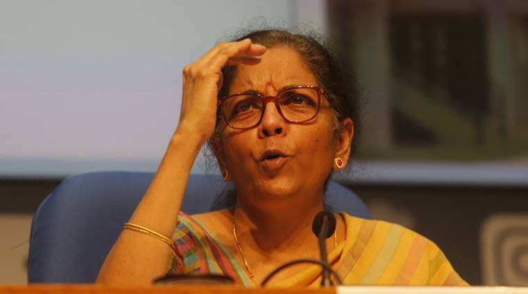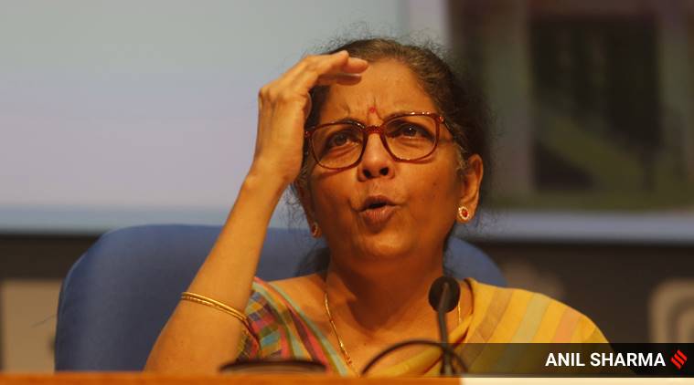 Finance minister Nirmala Sitha Raman during the press conference in New Delhi. (Express photo by Anil Sharma)