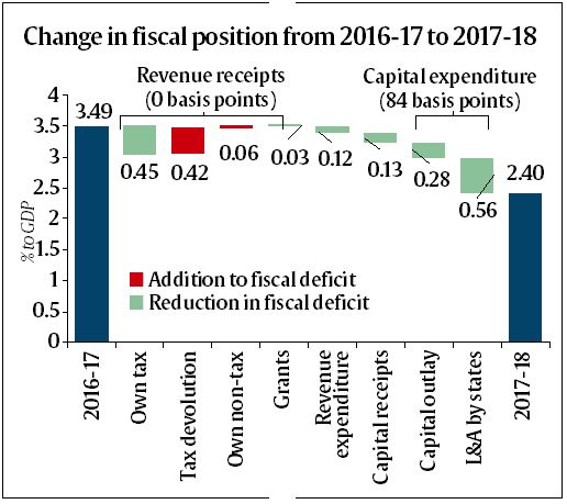 “States’ gross fiscal deficit (GFD) has remained within the FRBM threshold of 3 per cent of gross domestic product (GDP) during 2017-18 and 2018-19. This has, however, been achieved by sharp retrenchment in expenditures, in particular, capital expenditure. For 2019-20, states have budgeted for a consolidated GFD of 2.6 per cent of GDP with a marginal revenue surplus (as against revenue deficits in the previous three years),” as per the report released Monday.