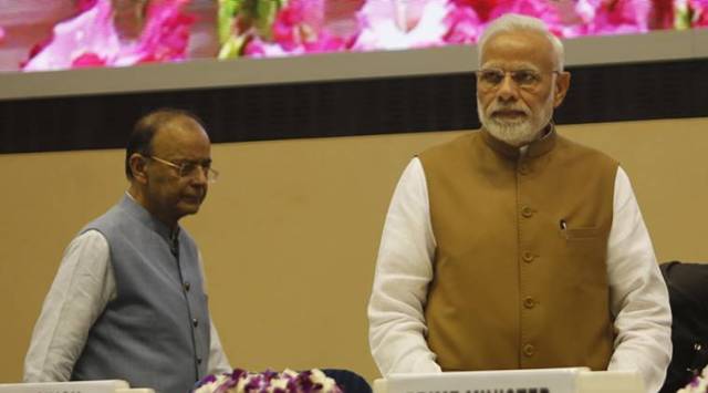 Narendra Modi with Arun Jaitley on Friday. (Express Photo/Anil Sharma)